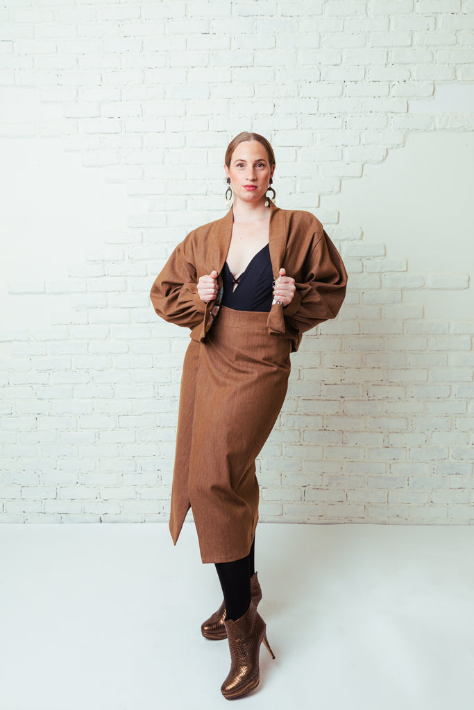 She dreams, sketches, selects, and stitches each creation with deep intention. From the first thread to the final touch, everything passes through her heart.